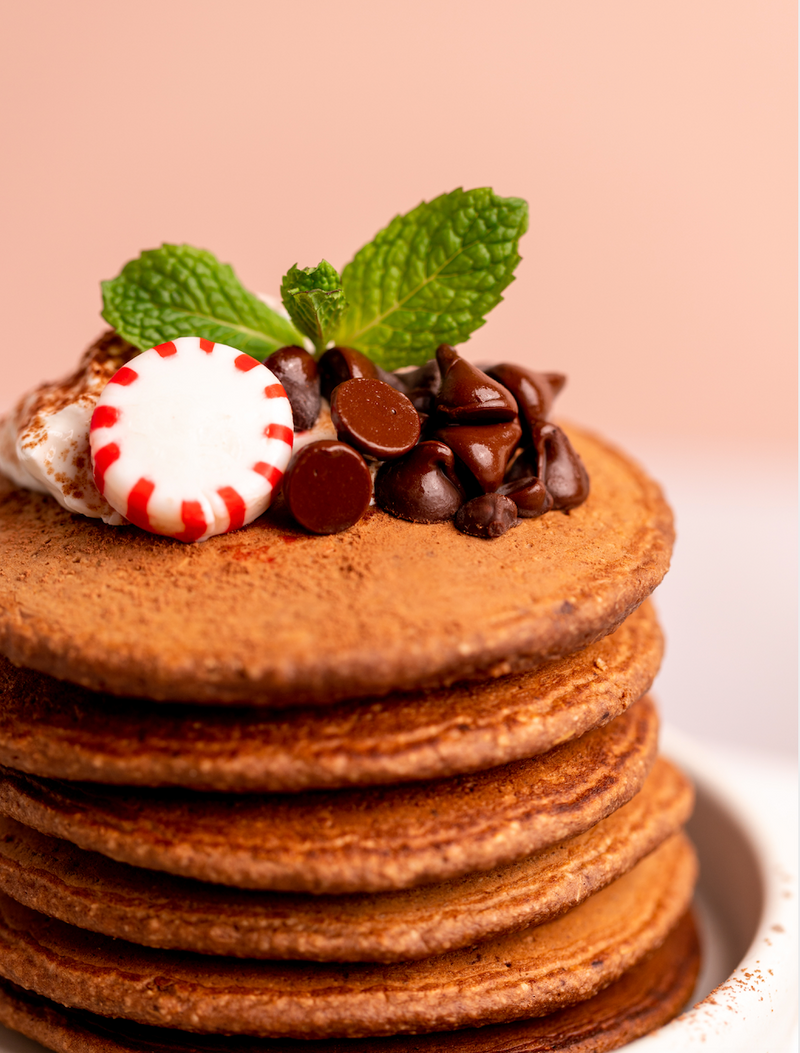 For the mornings you're not feeling creative but they're all hungry, whip up this easy holiday-themed pancake recipe. We took our gluten-free Everyday Delicious Original Oat Pancake Mix and added cocoa powder and peppermint white chocolate to spice things up a bit. You can mix it up even more by adding holiday candies, whipped cream and chocolate topping.